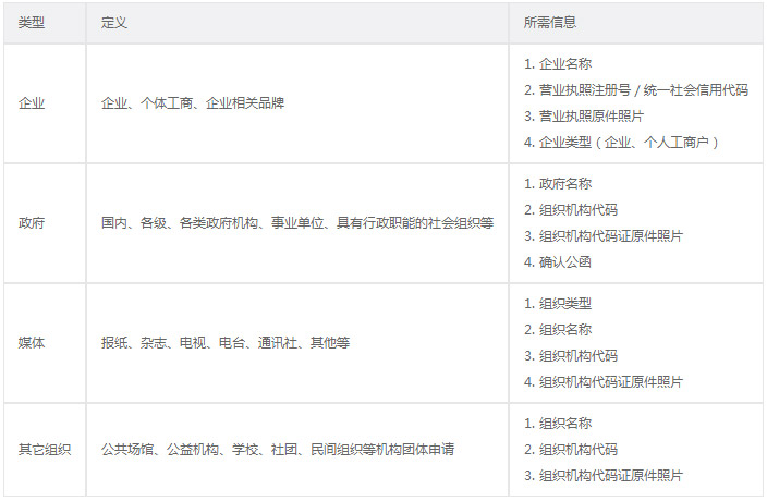 企業、 政府、 媒體、 其它組織四種主體類型。