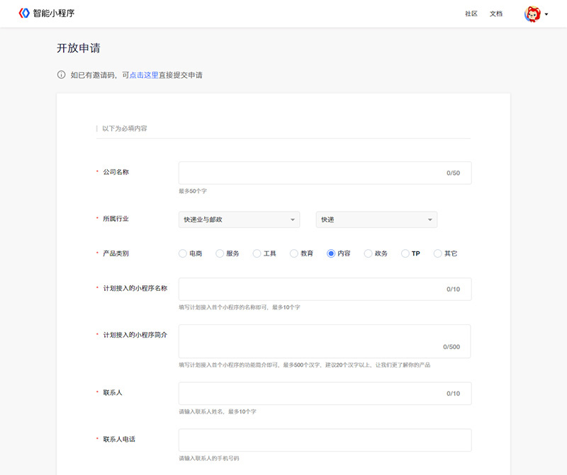 一、百度智能小程序入駐申請