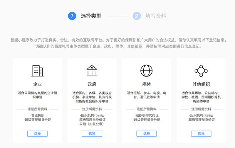 百度小程序注冊申請流程